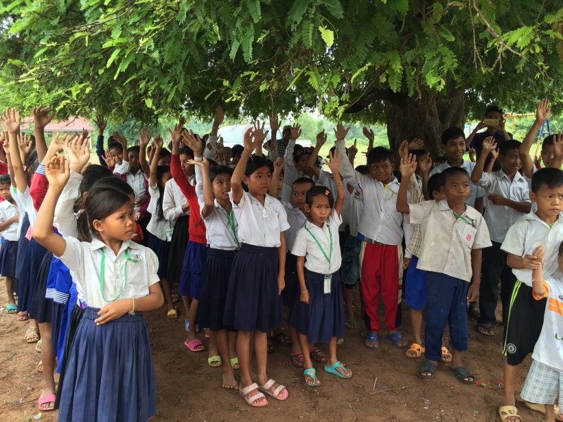 The rainy season has arrived in Banteay Meanchay Province of northern Cambodia, making travel interesting to say the least. Tuesday began with worship at the Samaritan’s Purse offices in Sisophon followed by a muddy trek out to see a primary school completed July of 2014 by Samaritan’s Purse. The before and after images are staggering. Up through half of last year, the children of Srah Trach suffered through inferior training in deplorable surroundings. It is hard to imagine how anyone could learn while worrying about being stung or bitten by something, or during the frequent rains that soaked them while seated in their classroom. The children are flourishing in a well constructed facility that keeps the children and teachers dry, and allows for secure intellectual exploration. Teachers are inspired to learn themselves, while students use iPads to accelerate acquisition of reading skills. Only God knows the full present and future impact of this simple yet profound investment in a generation of Cambodian children whose grandparents were slaughtered by the Khmer Rouge a mere forty years ago.